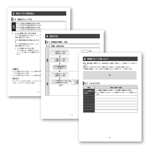 原稿作成 | 8,000円〜 | ページ | 実機・取材内容・いただいた資料などをベースに、 テクニカルライターがマニュアル本文を書き起こします。 ※2※3 |